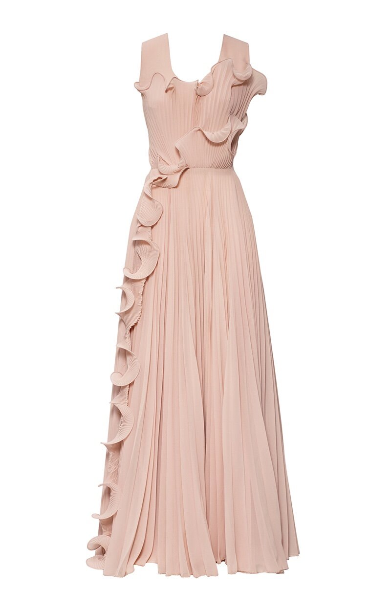 Pleated Georgette Evening Gown